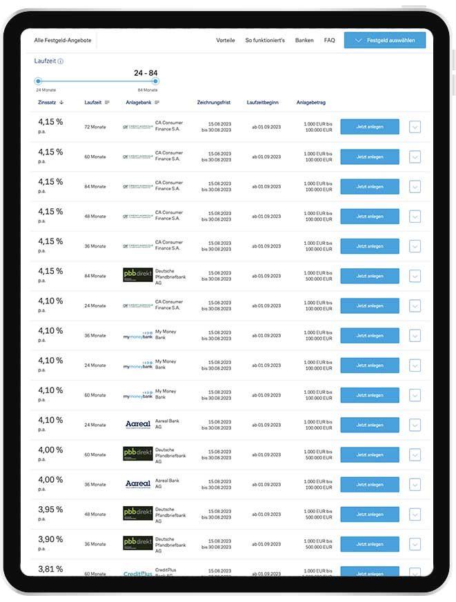 - Attraktive Festgeld-Angebote ausgewählter Partnerbanken